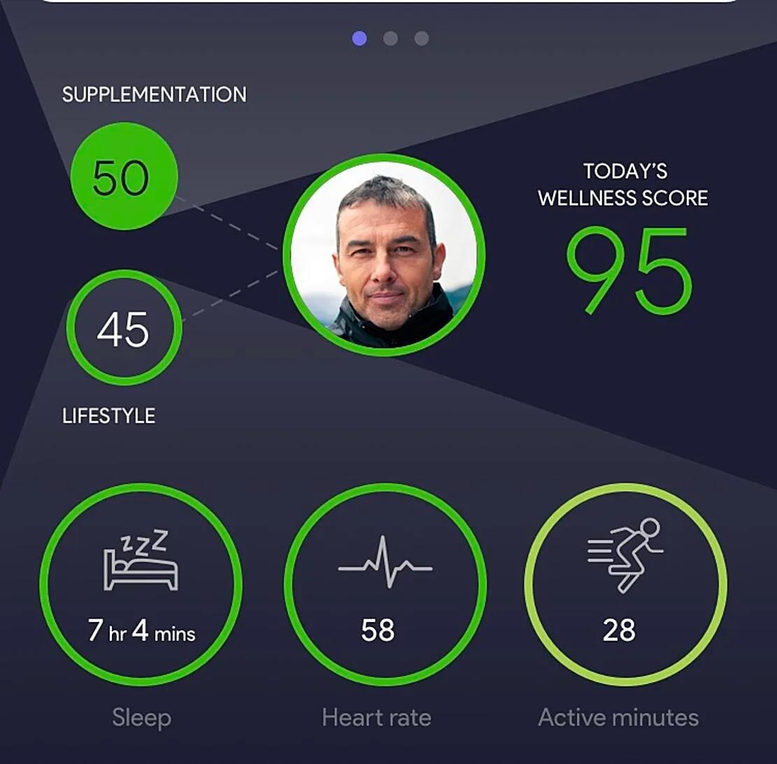 So, the Serotonin Wellness score is the sum total of your lifestyle habits, exercise, RHR, and the tracked consumption of your personalised supplement stack. One glance at the app home screen is enough to tell you what component you need to complete on that day, to get your 100 score!!